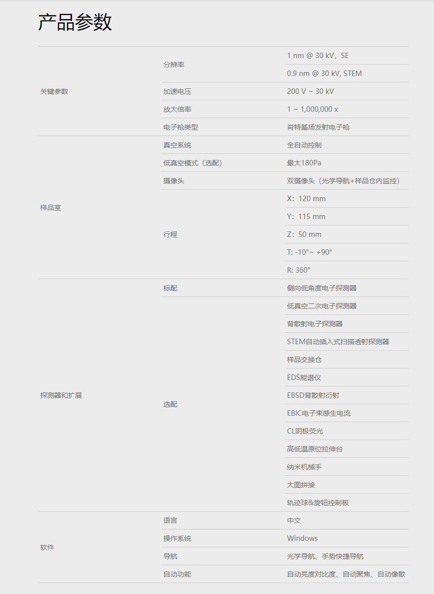 SEM4000是一款分析型热场发射扫描电子显微镜,配备了高亮度、长寿命的肖特基场发射电子枪。三级磁透镜设计,束流*大可达200 nA,且连续可调,在EDS、EBSD、WDS等应用上具有明显优势。支持低真空模式,可直接观察导电性弱或不导电样品。标配的光学导航模式,以及直观的操作界面,让您的分析工作倍感轻松。